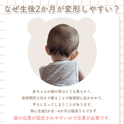 中央のくぼみに後頭部をあてることで優しく圧力を分散し頭の丸みをサポート 左右に寝返りしずらい構造で絶壁予防に! 通気性のいい中綿使用で汗かきの赤ちゃんも快適! - 【point2 枕ごと丸洗い可能】