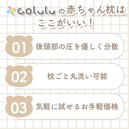 Coluluの赤ちゃん枕は、機能を絞ることでお手軽な価格を実現しました! 「まず試したい」を叶える赤ちゃん枕の新定番 軽量コンパクトで持ち運びもラクラクなので、 いろんなシーンで大活躍♪