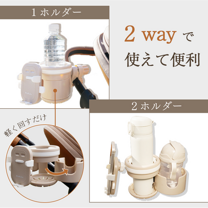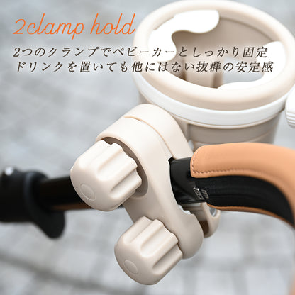 - 2個のクランプでベビーカーとの固定力が強いため、飲み物の重さで傾かない。
