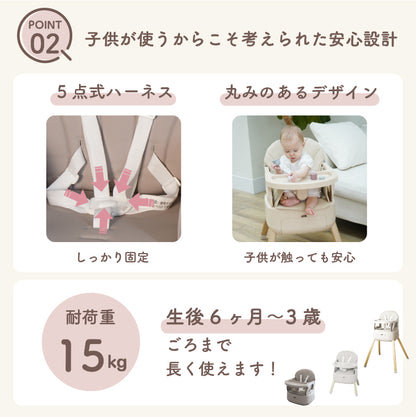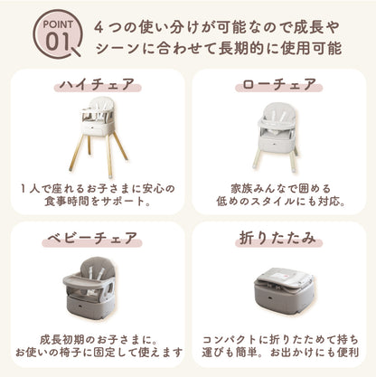 ・「ハイチェア」「ローチェア」「ベビーチェア」の3way