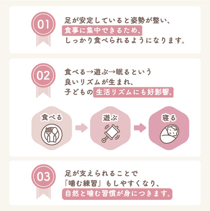 ・お子様が足でテーブルや壁などを押して、椅子が傾く危険があるため、十分に注意してください。