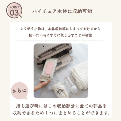 「折りたたみ」ではなく「コンパクトにまとめること」が可能なハイチェアです。