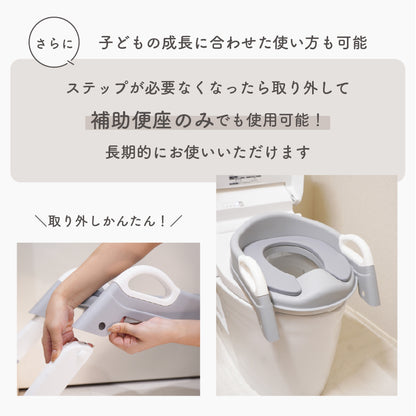 - お子さまの“ひとりでできた!”をサポートする、ステップ付き補助便座。
