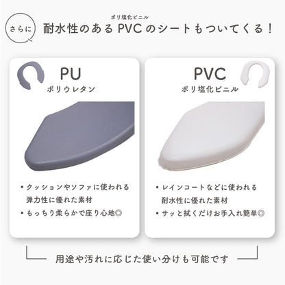 - 座面クッションにはPVC/PU素材を採用し、お尻もやさしくサポート